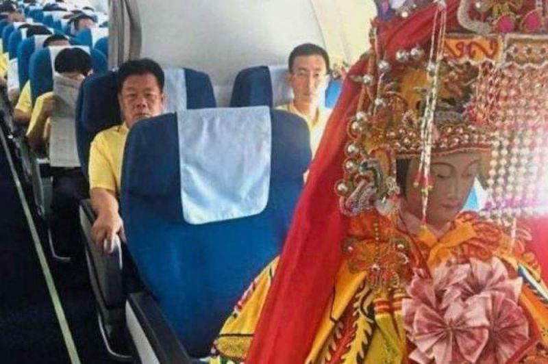 The deities travelled at the weekend with Xiamen Airlines — each business class seat costing 2,091 yuan (about SGD425). Some seats had to be removed to make space for towering Mazu on the flight.