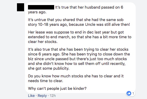 However, several netizens warned others about the shop using this “closing down sale” tactic for several years, with some even calling it a “scam”. Stepping in to the owner’s defense, one lady who claimed to know the couple said that the husband had actually passed away six years ago, and the shop’s lease was supposed to expire last December, but got extended to this month for the business to clear all its stock.