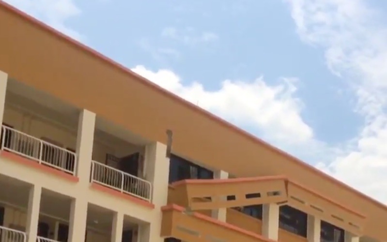 ‘Twas a Sunday morning scare for the residents of Block 201E along Tampines Street 23 yesterday when a concrete structure on the topmost floor dislodged by itself.