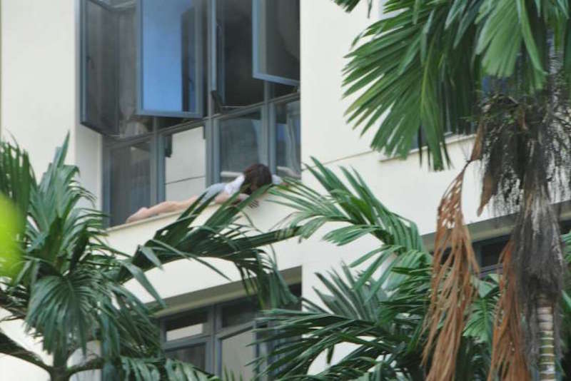 Residents of Tanah Merah’s East Meadows condominium could only look and shout in horror on Wednesday afternoon as they witnessed a woman hanging on for dear life on the window ledge of her unit, where a blaze was raging inside.