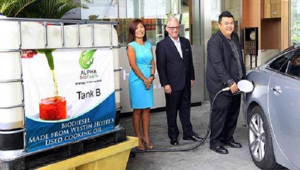 Recently acquired The Westin Singapore is the first hotel here to power its limousines — two jaguar XJ sedans — with biodiesel fuel made from vegetable oils or animal fats from its kitchens.