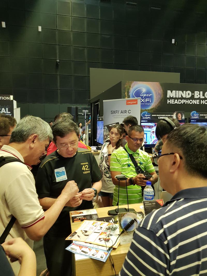 The CEO was spotted helping customers with new Creative products such as the Super X-Fi Amp, a headphone amp for Android users that customizes how sound travels just by analyzing three pictures of your face and ears through an app.