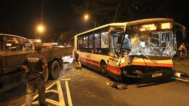 According to The New Paper, the bus was involved in an accident with three lorries on Wednesday night, which shattered the windscreens and sent passengers flying. The brunt of the damage was taken at the front of the bus, causing the driver to be trapped in his seat.