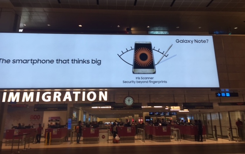 All that said, we find it real odd that Samsung’s gigantic ad of the Galaxy Note 7 remains plastered at Changi Airport, of all places. Here it is looming large over the airport immigration counter last weekend: