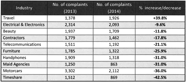 Despite the number of high-profile cases involving the Consumers Association of Singapore (CASE) last year (particularly errant vendors in People’s Park Complex and Sim Lim Square), the agency revealed today that there was actually a significant drop in the number of complaints filed over 2014.