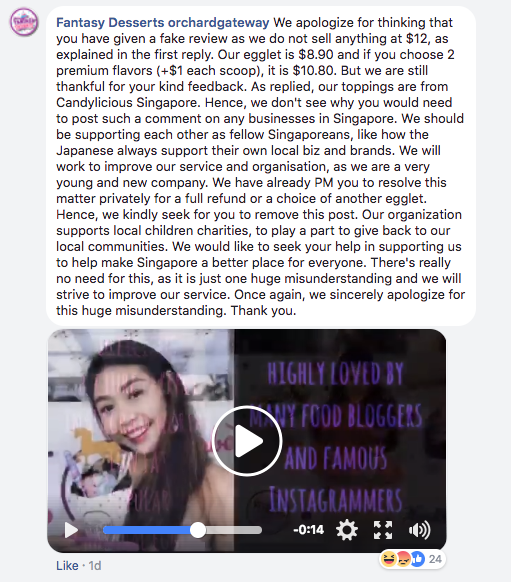 Unfortunately for Fantasy Desserts, things got messier when more netizens started to chime in on Ho’s side — so the business did a quick about-turn and ditched the mocking tone for a contrite one.