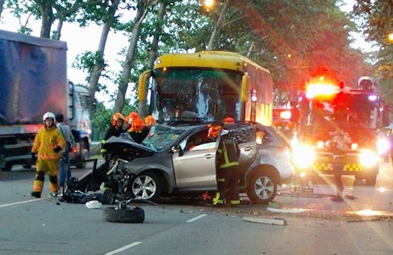 The Singapore Civil Defence Force (SCDF) was alerted at about 6.35am, dispatching a fire engine, a Red Rhino, five ambulances and two other support vehicles to the crash site. Rescuers managed to extricate the driver using hydraulic tools, but he was subsequently pronounced dead at the scene by paramedics.