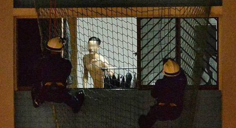 With that, the SCDF Disaster Assistance and Rescue Team (DART) were called in to prevent him from doing anything drastic. As the rescuers set up the safety net and rappelling equipment, residents across the block saw that he was pacing around in the room, stark naked.