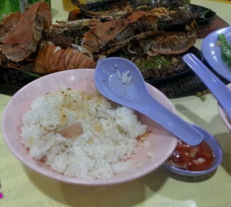Someone called Lim, recently wrote to Stomp about discovering one in the bowl of rice served at a barbecue seafood stall at Jurong West Street 41.