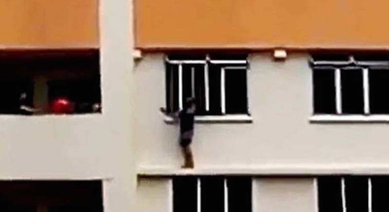 The SCDF was alerted to a distress call by a resident living in the opposite block who spotted the elderly man standing on the ledge and gripping the window grilles, initially mistaking it as a suicide attempt. At closer inspection however, the caller grew concerned about the safety of the man on the ledge, as he seemed unable to lift himself back into his flat on his own. The authorities were then called.