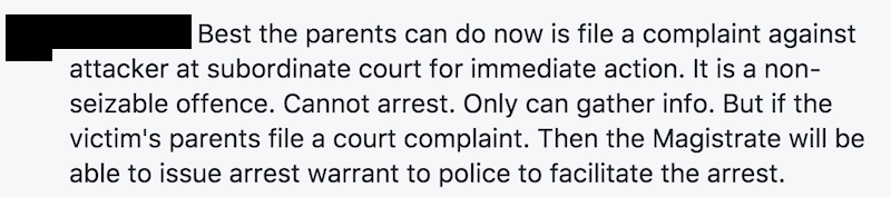 From Chan’s post, it seems that they’ve been busy pushing the police to take solid action against the man. But repeated calls and requests to the police hotline, police centers, and even the Investigation Officer in charge have yet to result in a satisfactory effort for the upset parents.