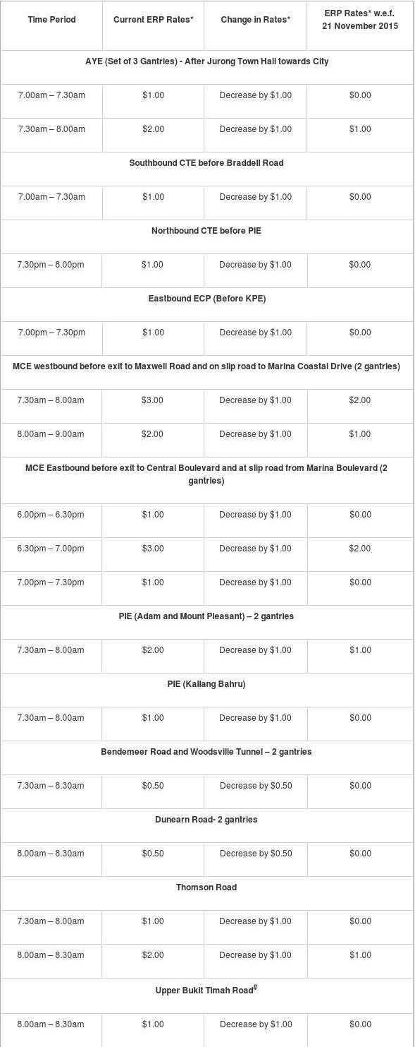 ERP rates at selected roads and expressways will be reduced by a dollar from Nov 21 to Dec 31: