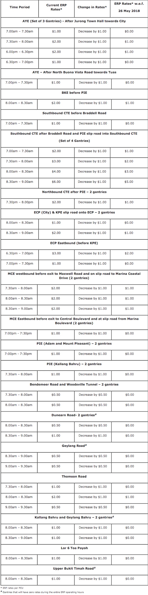 The Land Transport Authority announced yesterday that the ERP gantry rates for certain roads and expressways will be reduced by a dollar. It’s a long list which you can check out below, and enjoy the reduced rates while you can from May 26 to June 24.