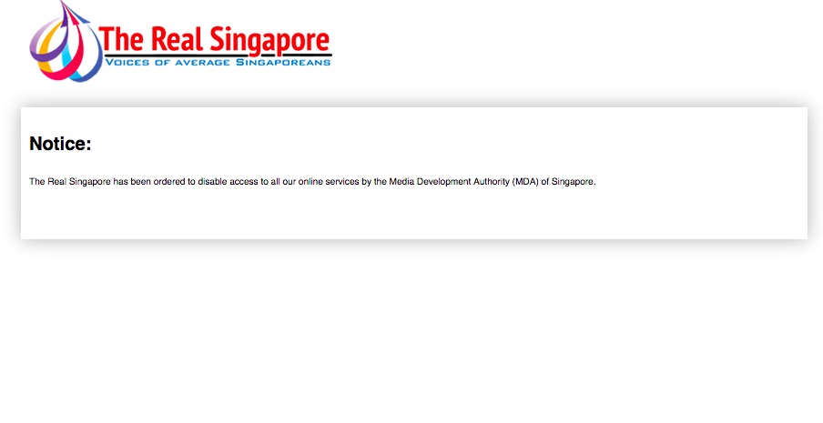 As of yesterday evening, sensationalist socio-political website The Real Singapore has effectively been shut down by the Media Development Authority of Singapore (MDA).