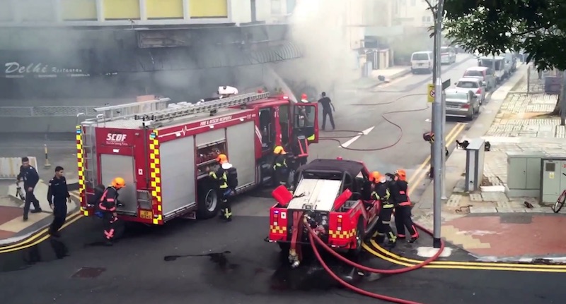 The Singapore Civil Defence Force (SCDF) were able to respond quickly to the scene as a convoy of personnel and vehicles had been heading to an event nearby at Burmah Road. Two fire engines, two red rhinos, an ambulance and a support were dispatched to the site.