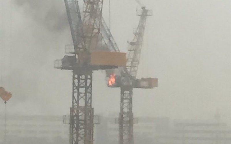 Most folks would have been most glad to see some rainfall after an extra humid morning today — but not so for firefighters at Woodlands, who had to fight a blaze that broke out on a construction crane, presumably due to a lightning strike.