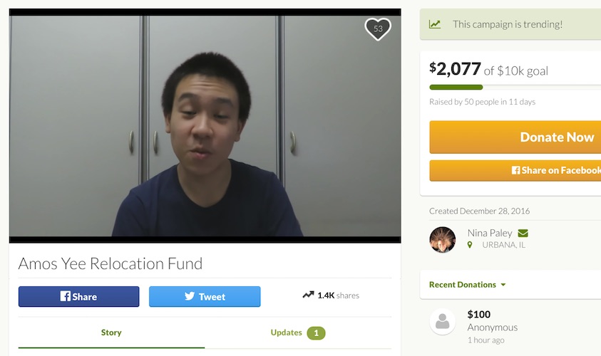 It’s been more than 10 days since Amos Yee launched a gofundme campaign to crowdfund his efforts to obtain political asylum in the United States, but so far it has only reached about $2,000 (as of writing) out of the $10,000 sought after.