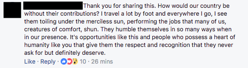 Bearing similar attitudes of gratitude, netizens praised the actions of the foreign workers, saluting them for their kind-hearted actions.