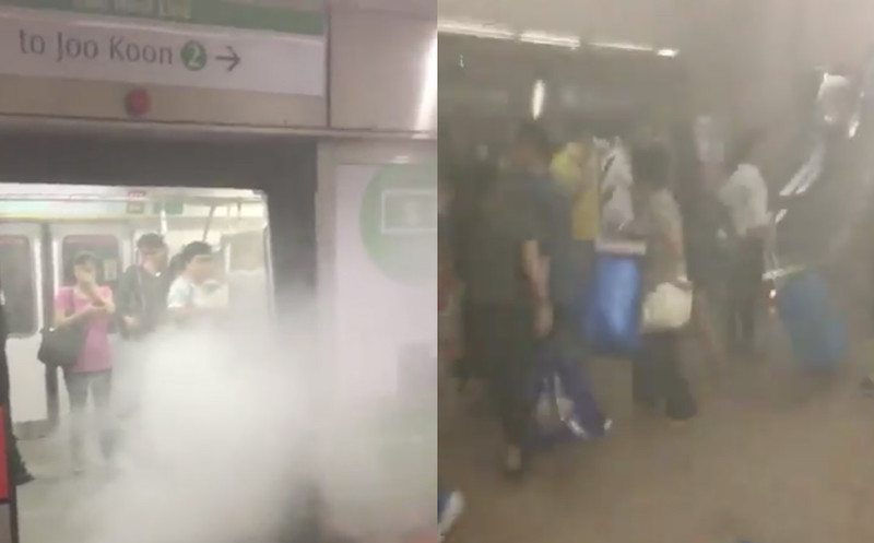 Huge plumes of smoke out from the train that pulled into Tanjong pagar mrt station! pic.twitter.com/MCncDJVSkD