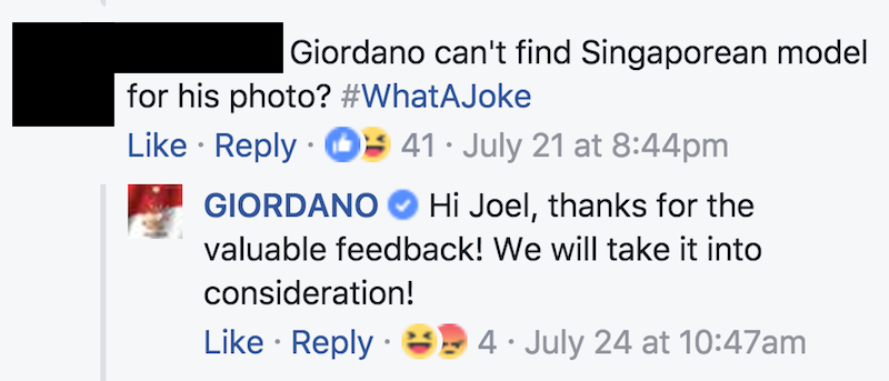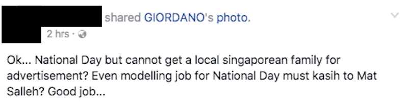 National Day’s coming very soon, so it’s time to slap on that flag and color scheme on everything but the kitchen sink. Clothing retailer Giordano also recently jumped on the patriotic bandwagon like every other local business — but sadly its attempt backfired hard in its haste to slap an advertisement together.