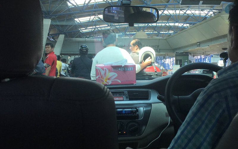 Of course, people in the vicinity couldn’t resist snapping photos of the out-of-place car in the motorbike lane. Finally, the officers opened the exit gate for the vehicle and checked the ICs of both the driver and the passenger.