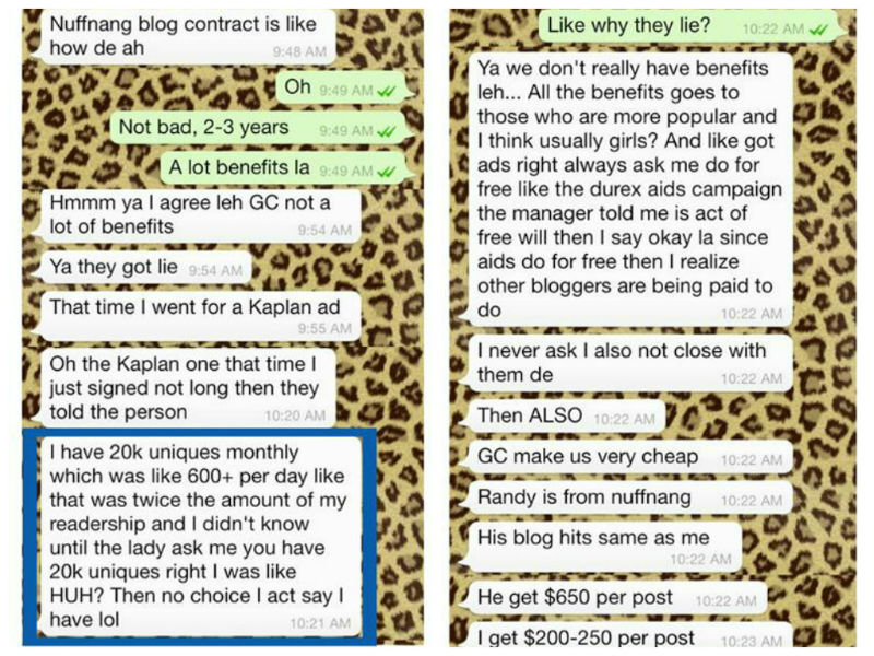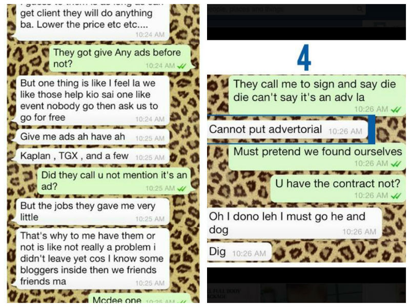 Naturally incensed, Xiaxue dug out more dirt, aimed specifically at Wee — screenshots of an alleged Whatsapp conversation he’d had with a Nuffnang blogger: