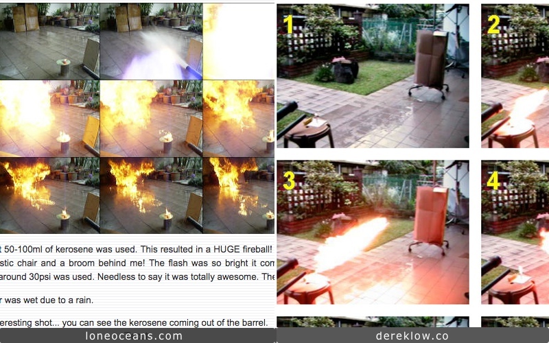 Here’s Low writing about his flamethrower experiment (published in 2007), which comprises of the same set-up as Loneoceans Lab’s Gao Guangyan’s fire cannon (published in 2004).