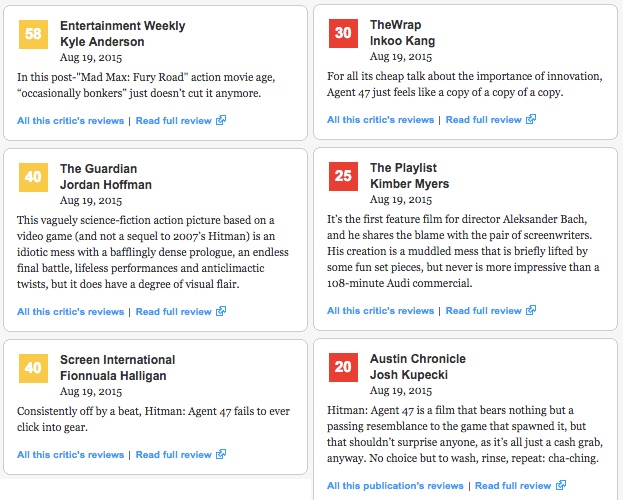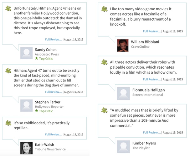 But don’t take it from us, here are what some professional film critics have to say about Hitman: Agent 47.