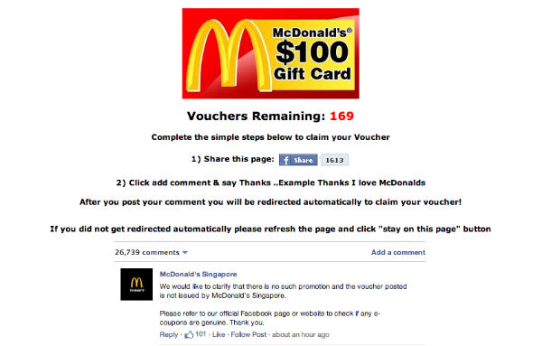The post also reminds McDonald’s customers to check the official Facebook page to check the legitimacy of e-coupons.