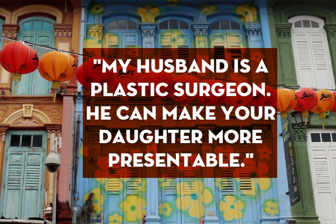 – My husband is a plastic surgeon. He can make your daughter more presentable.