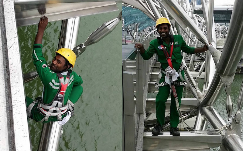 Enter Satish Kumar to the rescue. The worker from BMS Group Environmental Services called them to say he’d found the phone in the toilet, and arranged to meet at the Helix Bridge. Then he climbed up the bridge just to hand over the gadget.