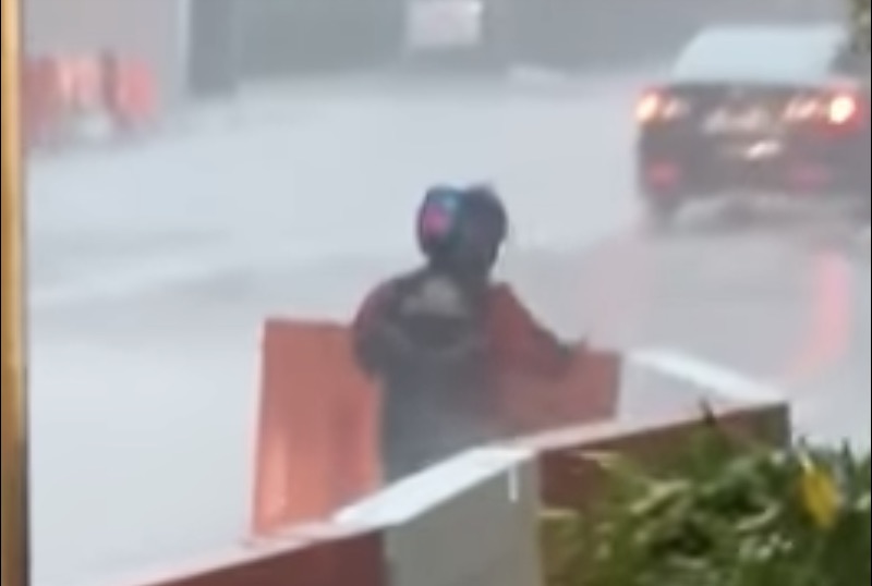 The civic-minded knight in shiny raincoat stopped his bike by the side of the road and helped to move the barricades aside to prevent a traffic jam from happening on the already-hazardous conditions of heavy rain. According to Stomp, the footage was captured this morning near OUE Downtown — meaning he helped ward off some nasty congestion in the central business district. Bravo, good man, bravo.