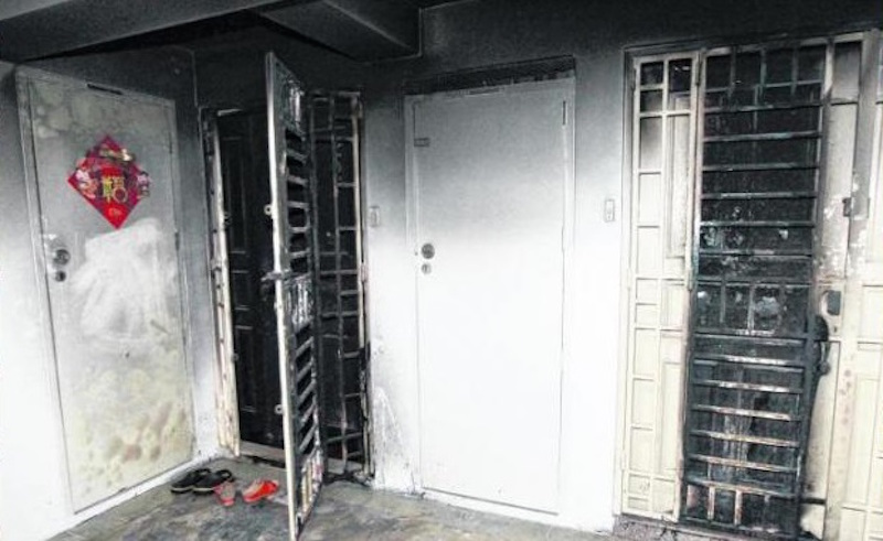 The doors of two flats in Jurong East were set alight last Saturday, and the occupants inside the flat weren’t even involved in the unscrupulous dealing. Lianhe Wanbao reports that the real target of the fire might be the alleged debtor who lived in the flat below the two units.