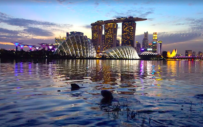 Of all his continual observations on the otter family (dubbed the Bishan Nine), this one may be his most aesthetically pleasing one — them swimming amidst a dusky background of Marina Bay. Captured recently at Gardens by the Bay East at 7.23pm, according to Soo.
