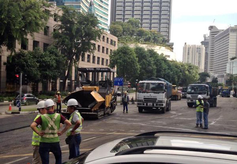 As of 8.15am this morning, the Land Transport Authority’s contractors were still cleaning up the oil spill and patching up the roads.