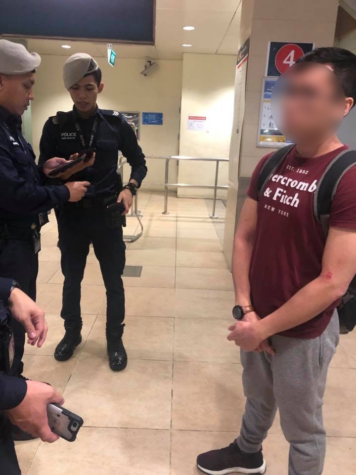 Upstanding citizen Fitri Hakim witnessed the shady suspect discretely attempting to take a video of an unsuspecting victim while standing behind her on the station escalator. “Managed to spot him from afar with his wallet covering a part of his phone screen which was already in video recording mode even before he went up the escalator,” Fitri wrote in a Facebook post, accompanied by pictures of the suspect and a clip of the man in the middle of his sick deed.