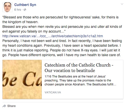 The man in the middle of the whole madness however responded on his own Facebook page with a quote from Matthew 5:10, indicating that he has no regrets at all over his actions. Possibly because he claims to have been feeling tired, and felt that his heart was acting up again.
