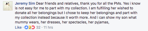 Recalling the memory of his dear wife, Sim described her as a “charitable person” who “believed in giving back to society” and whom many remembered as “a wonderful person”.