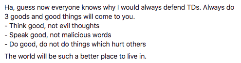 Over the years of his own taxi driving, Chua ended the post with a call for people to “think good”, “speak good”, and “do good”.