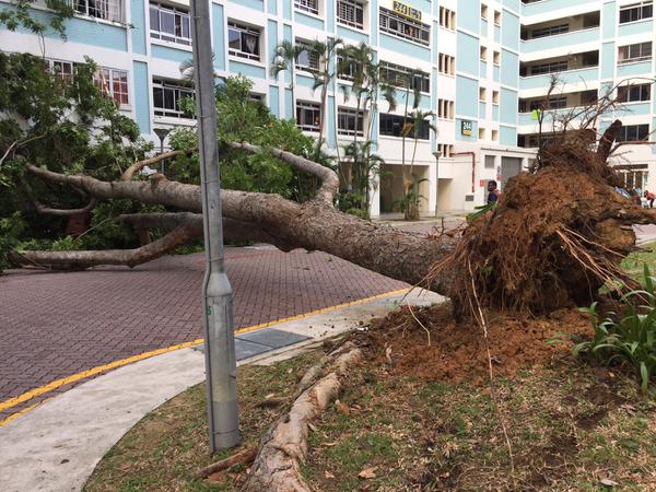From out of nowhere and with no provocation whatsoever, a 10-storey tall tree came crashing down onto a nearby block in Pasir Ris, smashing windows and hitting a boy during the horticultural mayhem.