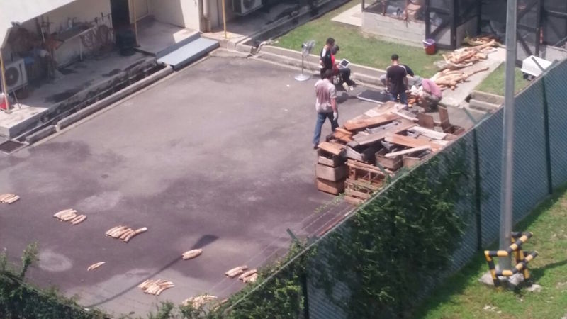 “A friend working at Changi captured some disturbing images of elephant tusks at Changi. Wonder how many elephants laid down their lives for all that ivory. We don’t know the back story or what happened, but all of this has been hidden from the media. All we know is that all of that has been confiscated by Customs, and the images are from the Customs compound.”