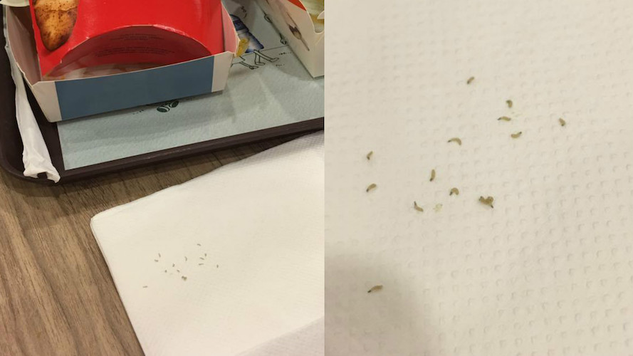 The worms look familiar, too — a similar incident transpired in October last year, where a customer lost his appetite after spotting several white worms on the sausage patty of his Big Breakfast set.