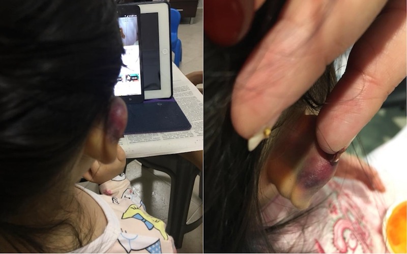 According to Kwan, the bruise on the child’s ear has yet to heal completely after more than three weeks since the incident.