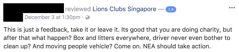 The backlash against Lions Club Singapore has been swift, with the Facebook post going viral and the charity organization’s own page hit with 1-star reviews.