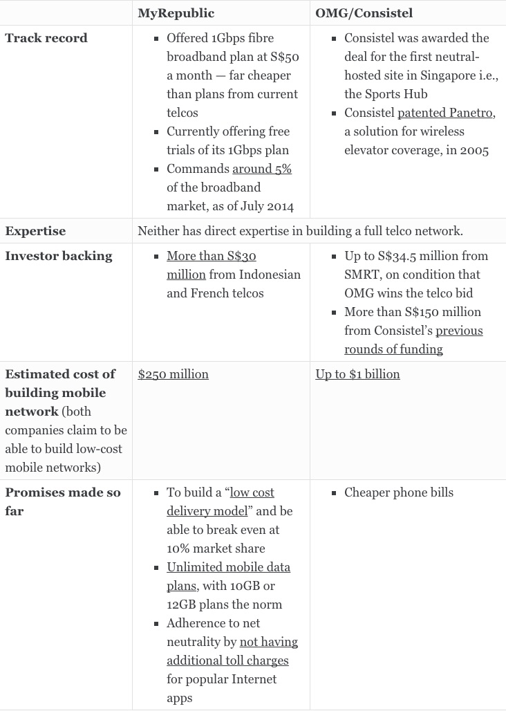 Let’s take a look at the table of comparison between the two telco hopefuls again:
