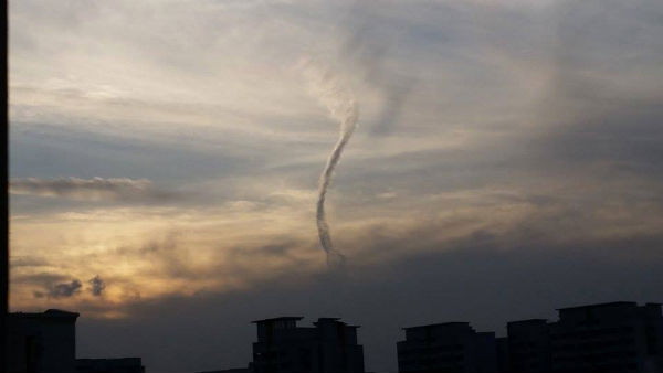 A waterspout — basically a tornado that occurs over water — was seen in the North East area of Singapore, namely from people located in the Jalan Kayu and Sembawang neighbourhoods. Waterspouts have been spotted in various parts of Singapore in this year alone, but it still surprises many citizens — despite its frequent occurrences in the tropics, Singapore with its minimal bodies of water is not a common host.