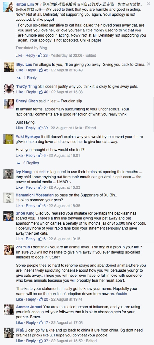 This here is actor Xu Bin, who quite outrageously said in an interview that he’d rather see a potential girlfriend’s cat being orphaned to make way for his own preferences for dogs. Speaks volumes about his esteem and empathy for women and animals in general, eh?
