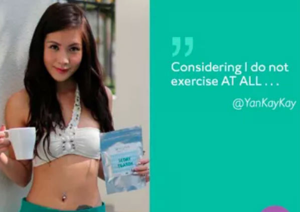 That’s all fine, except in this Facebook post (which we couldn’t help seeing because it’s been lingering in the ‘Sponsored’ feed for days now), the local model/blogger is saying, “considering I do not exercise AT ALL, this is just about the best thing I can do for my body”.