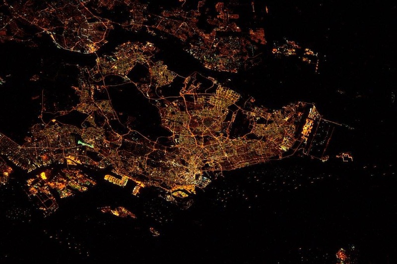 Pretty amazing to see what Singapore looks like from space, all lit up and peaceful at night.