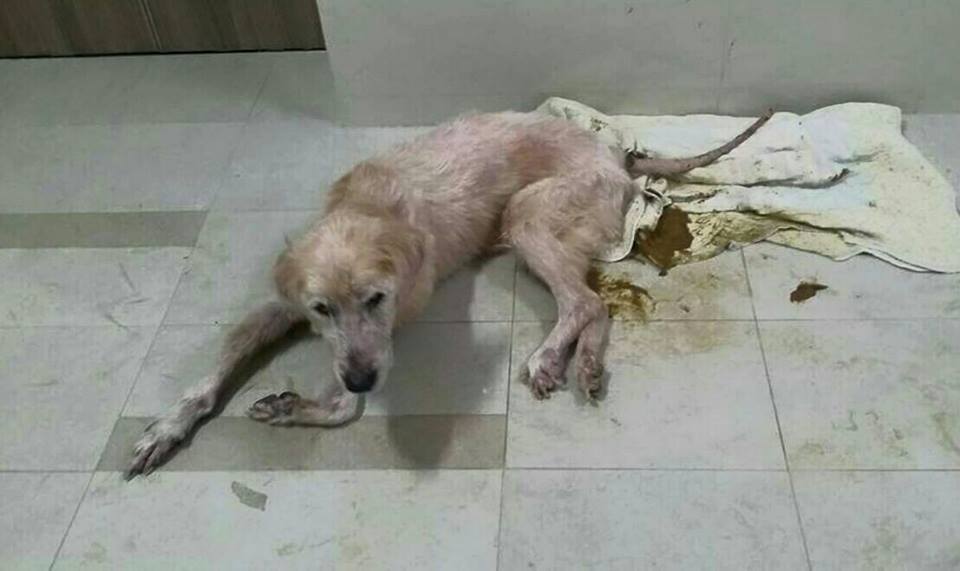 The sickly golden retriever was found at the lift lobby on the 13th floor of Blk 334B along Anchorvale Crescent, lacking all of its breed’s typically rich, shaggy fur and probably wracked with a multitude of ailments that left it agonisingly skeletal and lacking control of all bowel movements.